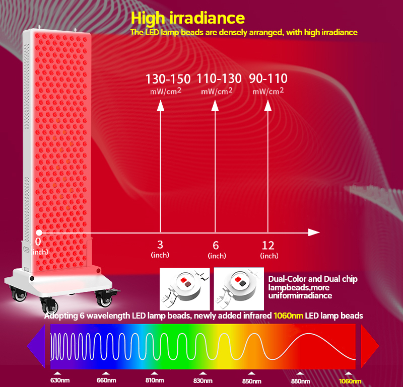 | Wavelength | 660nm:630nm:810nm:830nm :850nm:10060nm=450:150:126:300:24 |